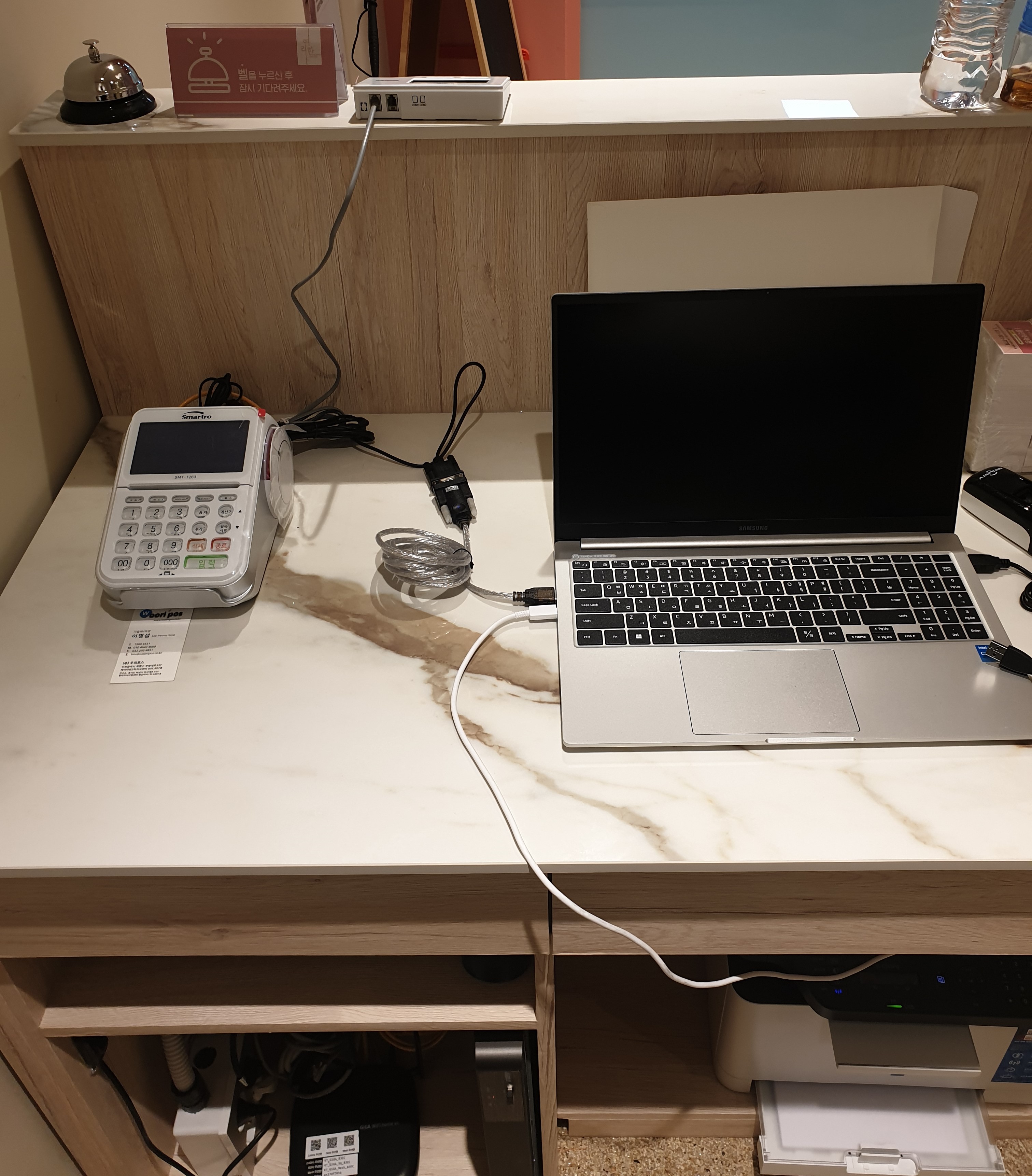 단말기 , 프린터 , 지문인식기 , 데스크탑 변경 진행 , 랜선 및 스피커 연결,프린터 재설치